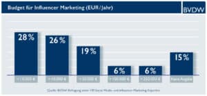 Laut einer aktuellen Umfrage  des Bundesverbands Digitale Wirtschaft (BVDW) unter werbungtreibenden Unternehmen sind bei 61 Prozent der deutschen Social-Media- und Influencer-Marketing-Manager 2019 steigende Budgets für Influencer Marketing geplant. Die Ausgaben für Instagramer belaufen sich bei rund einem Viertel der befragten Unternehmen auf jeweils 10.000 bis 50.000 Euro pro Jahr. Weitere 25 Prozent investieren zwischen 50.000 und 250.000 Euro pro Jahr.