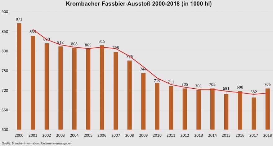 Dabei ist das Erfolgsgeheimnis der Inhaberfamilie Schadeberg schnell beschrieben: Line-Extension heißt das Prinzip, das kein anderer Brauer so rigoros vorantrieb wie Krombacher. Während vielen verborgen blieb, dass Krombacher Pils in den letzten 15 Jahren immerhin 400.000 Hektoliter an Jahresvolumen verloren gingen, konnten Radler, Alkoholfrei, Weizen, aber auch Hell und weitere Spezialitäten die Pils-Verluste wettmachen. Das Krombacher Hektolitersammeln sollte am Jahresende 2018 so erfolgreich gewesen sein, dass unter der Ausstoßstatistik erstmals die historische Zahl von 6,02 Millionen Hektolitern strahlte. Wie lange die Strategie noch hält, bleibt einstweilen offen. Der Krombacher See ist in die Jahre gekommen, die Dehnungsfähigkeit des Sortenspektrums unter gleichem Namen nahezu ausgereizt.