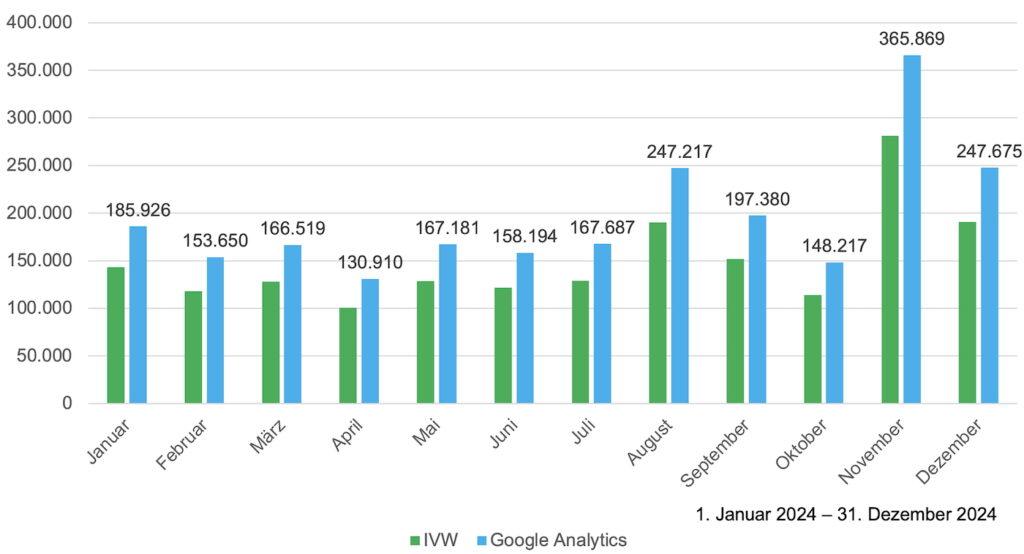 Für Getränke News hat die IVW im Jahr 2024 meist zwischen 25.000 und 30.000 Qualified Clients pro Monat gemessen.