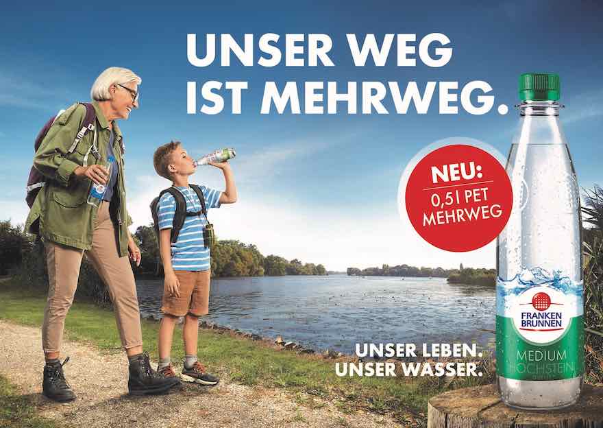 Frankenbrunnen will sein 0,5-Liter-Petcycle-Gebinde zum Jahresende durch eine individuell gestaltete PET-Mehrwegflasche im 11er-Kasten ersetzen. Das neue Gebinde ist bereits Anfang September in den Markt eingeführt worden. Ziel sei, über neue Käufer die Reichweite der Marke im regionalen Mineralwasser-Segment deutlich auszubauen.