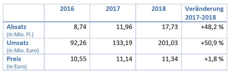 Worauf aber auch immer die Experten ihre düsteren Prognosen stützen – die Marktdaten können es nicht sein, denn die Entwicklung im Handel kennt nach wie vor nur eine Richtung: aufwärts. Laut dem britischen Marktforschungsunternehmen IWSR hat sich die Kategorie von 2012 bis 2017 fast verdoppelt (+91 Prozent), und auch aktuelle Zahlen des Instituts IRI weisen steil nach oben: Im Lebensmittelhandel wurden im letzten Jahr 17,73 Millionen Flaschen Gin (inkl. Genever) verkauft; gegenüber 2017 entspricht das einem Zuwachs von gut 48 Prozent. Seit 2016 hat sich der Absatz sogar mehr als verdoppelt (8,7 Mio. Flaschen).